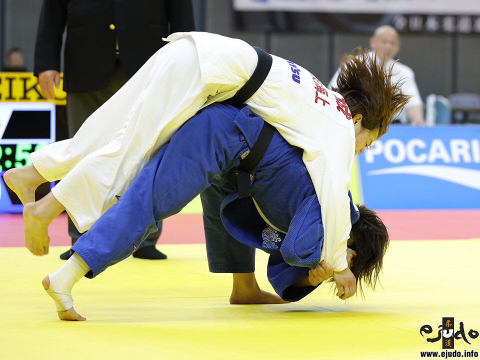 実績のある選手が揃い、レベル高く、そして混戦となった本階級。決勝には世界ジュニア選手権3位の福永葉子(筑波大2年)と、2021年全日本選抜体重選手権王者の坪根菜々子(自衛隊体育学校)が勝ち上がった。