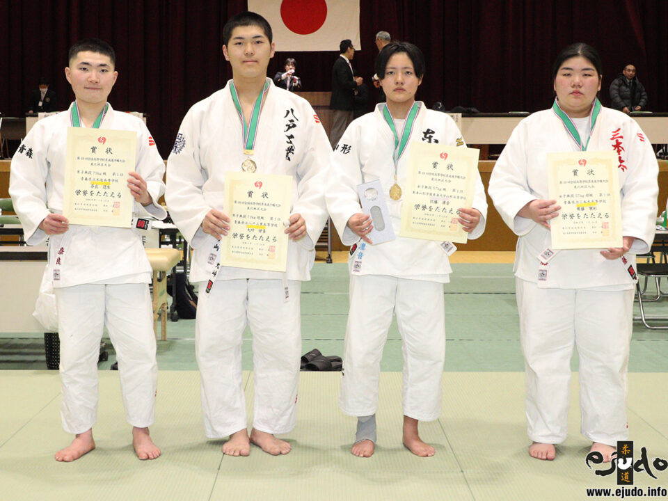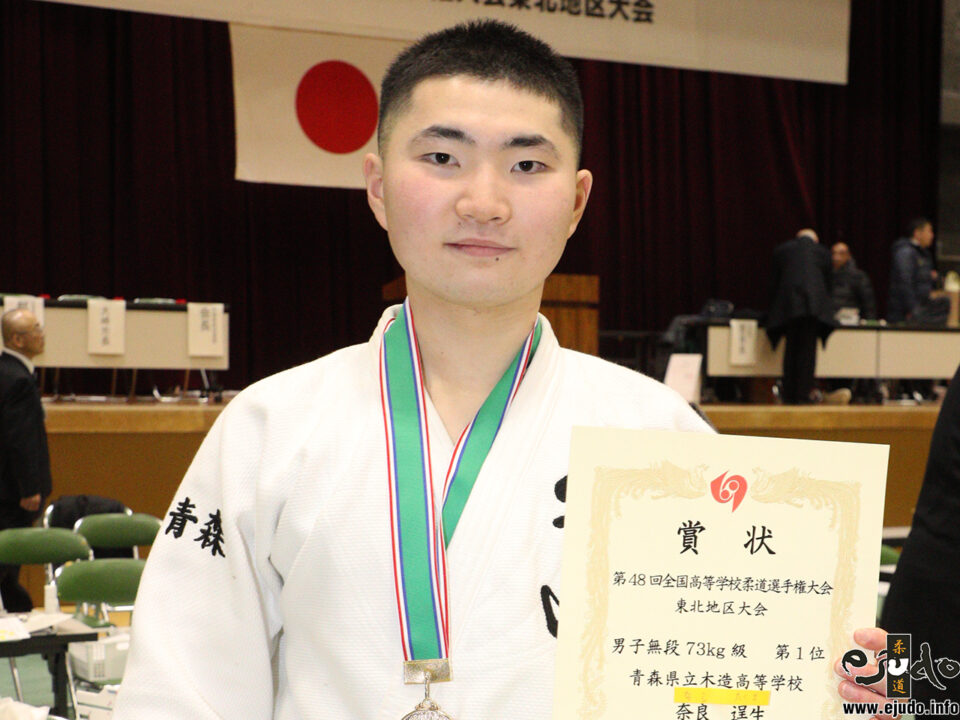 男子73kg級は奈良逞生(青森・木造高)が豪快な投げを次々決めて優勝。決勝では水戸洸之介(宮城・仙台工高)を51秒の右内股「一本」で退けた。73kg超級は、大峠栄喜(青森・八戸工高)が制した。パワーを生かした寝技を武器に接戦の連続を勝ち上がり、決勝では横山快翔(福島・会津農林高)を2分56秒、右内股「有効」からの裏固「一本」で破った。