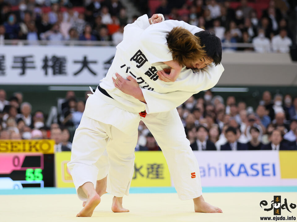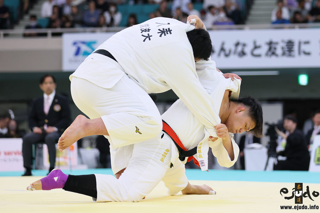 上水 そう。そういうものに嵌めようとするのかなという予想を立てて見ていました。いい試合でした。阿部選手も掬投で捌いたり、脚を取っての大内刈を狙ったり、目いっぱい技術を使っていましたね。「これは、ひょっとするかもしれない」という空気まで作ったのはさすがです。近くに天理大OBの植岡(虎太郎)選手がいたのですが、これはまずいなと、「本当頼むわ、何しとんねん」「負けたら本当に穴井先生に怒られるで」という感じのことをずっと言っていて、かなり焦っていました。