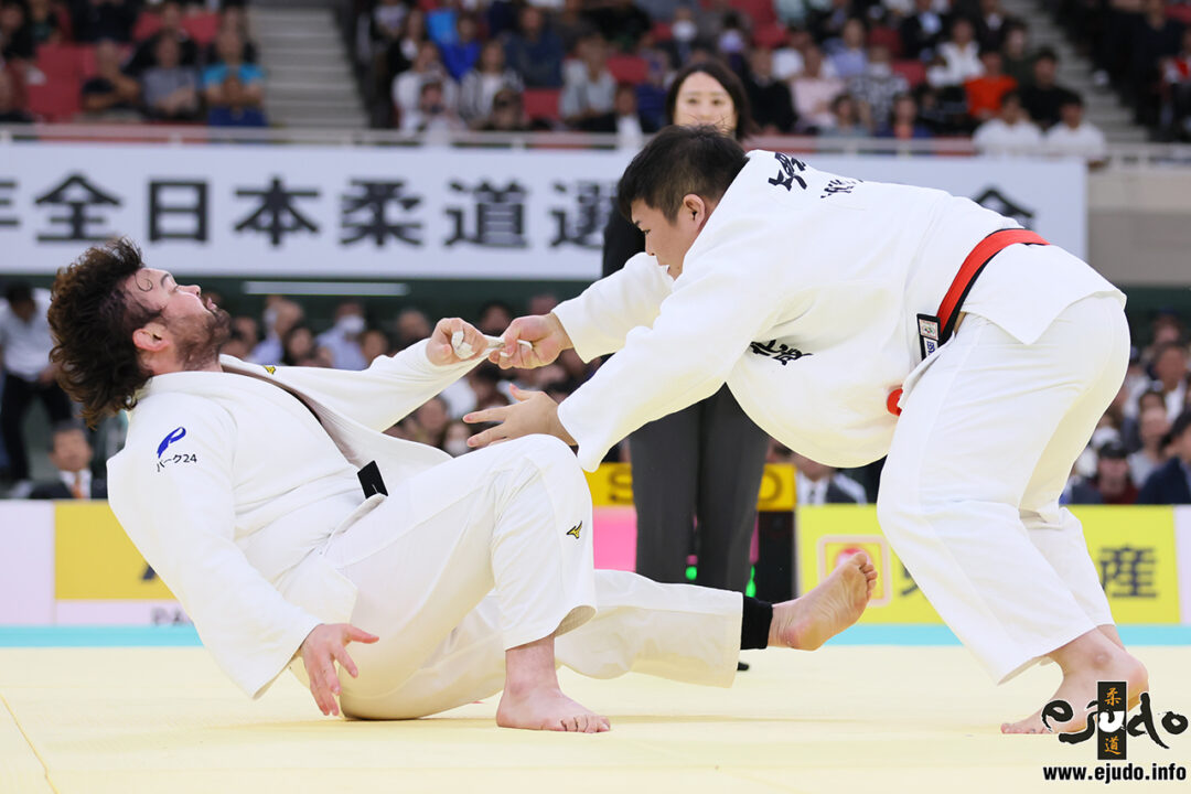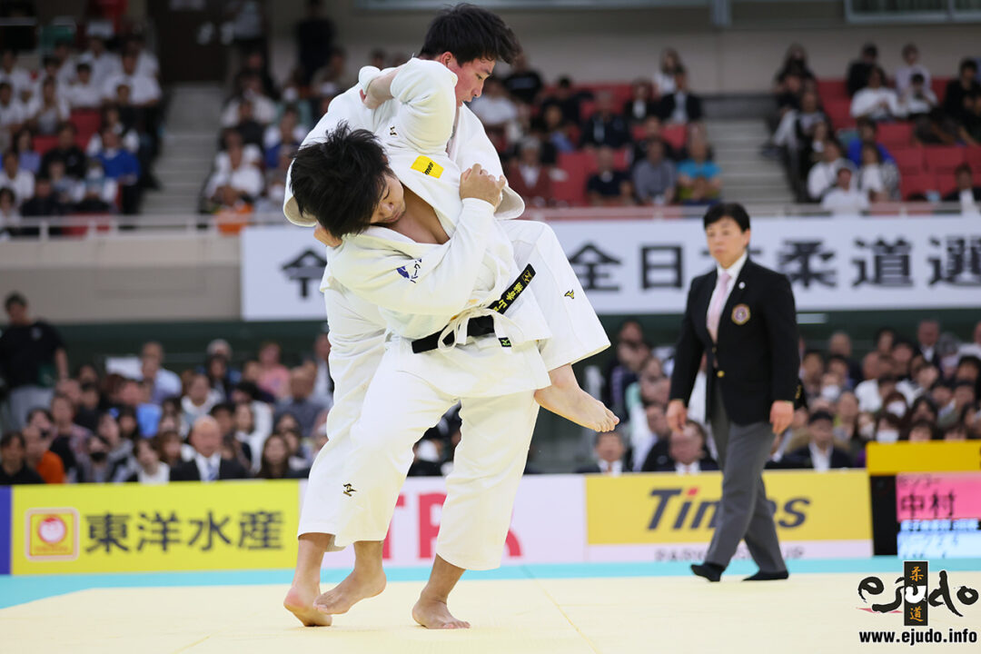 朝飛 あれは凄かった。直前に王子谷選手と長い時間を戦った後でもう力が残っていないと見えたのですが、それでも投げに行った。「組んだ瞬間に、投げたいと思った」と後で話していました。何度か転がして、「指導」も積んで、そのままでも勝ちに持っていけるのに、その上で「投げて終わらせたい」と。全日本を取るにふさわしい気構えだと思いました。