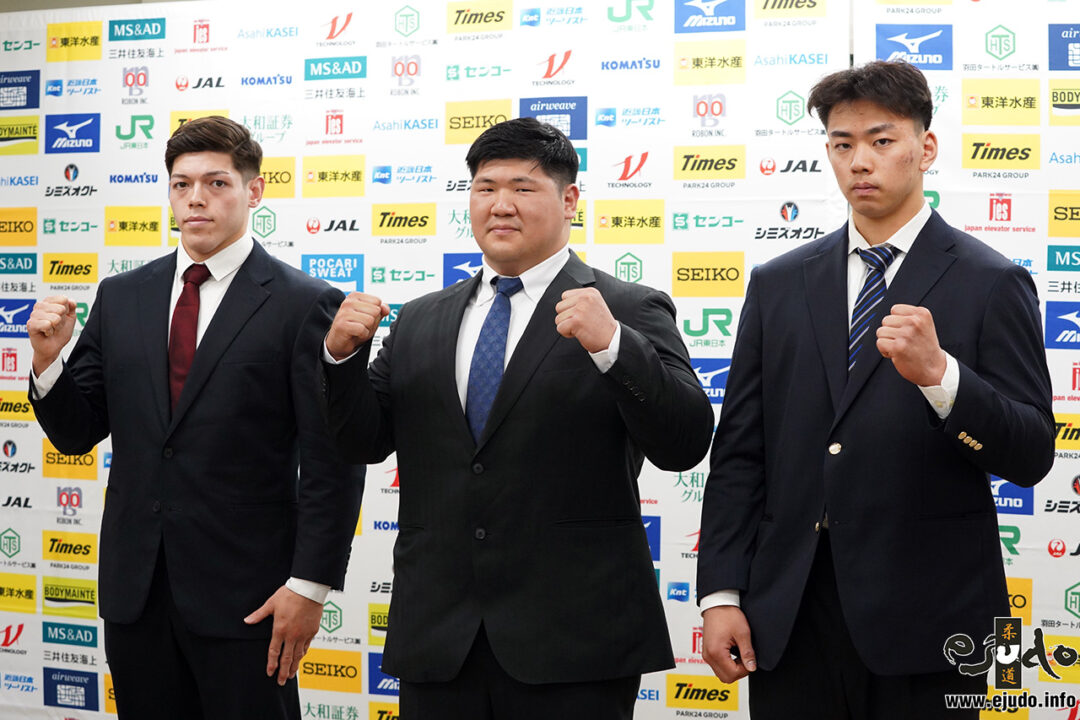 会見に臨んだ3選手。左から村尾三四郎、香川大吾、新井道大。 体重無差別で柔道日本一の座を争う全日本柔道選手権をあすに控えた25日、都内で有力3選手が会見。大一番に向けた意気込みを語った。 有料会員記事【残り672文字 / 全773文字】 新規会員登録 ログイン ※ ログインしているにもかかわらず、再度ログインを求められる場合 スポンサーリンク